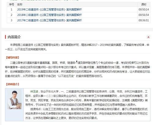 你有没有想过,想要在公路工程领域大展身手,二级建造师证书可是必不可少的利器呢?而说到学习这个证书,视频教程无疑是个好帮手。今天,就让我带你一起探索那些让人眼前一亮的二级建造师公路工程视频,让你轻松掌握公路工程知识!